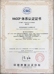 南充佳美于2008年按GB/T 27341-2009標準建立HACCP體系,同時(shí)取得HACCP 體系認證證書(shū)